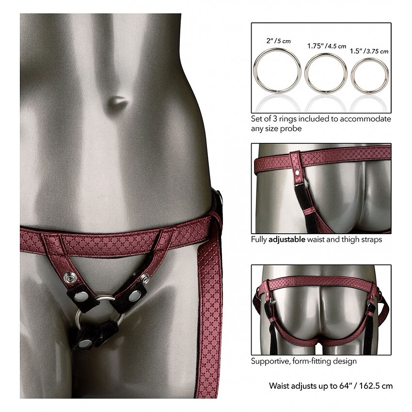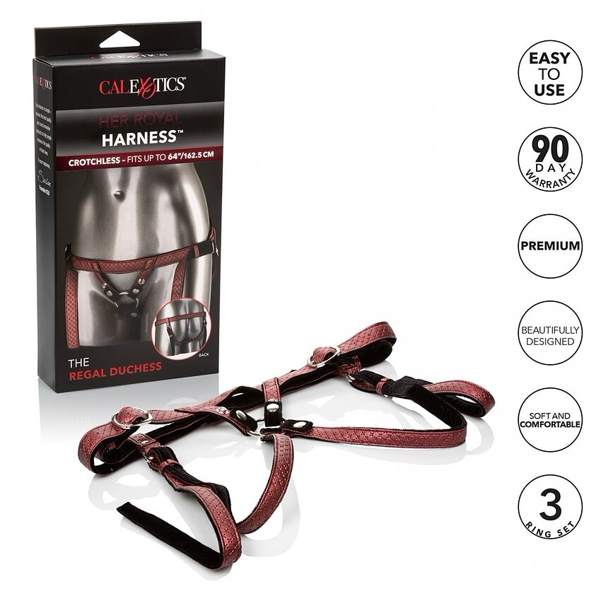 Hamul The Regal Duchess este pentru strap-on și are un înfățișare deosebit de elegant. Este format din centuri reglabile, garantând că se va potrivi pe aproximativ orice conformație fără nereguli (162.5 cm). Este dotat cu 3 inele ce utilizează sistemul O-ring de mărimi diferite, compatibile cu majoritatea grosimilor de dildo.