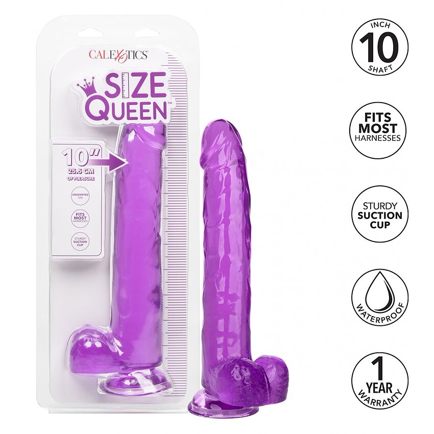 CalExotics Size Queen este o replică realistică construită pentru stabilitate și confort. Lungimea întreagă de 30,5 cm și inserabilul de 25,5 cm o fac compatibilă cu majoritatea hamurilor utilizate în pereche. Materialul TPR propune o senzație naturală, în timp ce finisajul prudent păstrează detalii realiste.