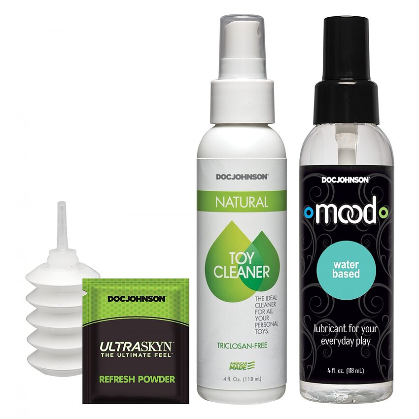 Setul Vac-U-Lock Dual Density Extreme include, de asemenea Doc Johnson Natural Toy Cleaner și ULTRASKYN Refresh Powder pentru a menține corect și igienic accesoriile ULTRASKYN cu dublă densitate.