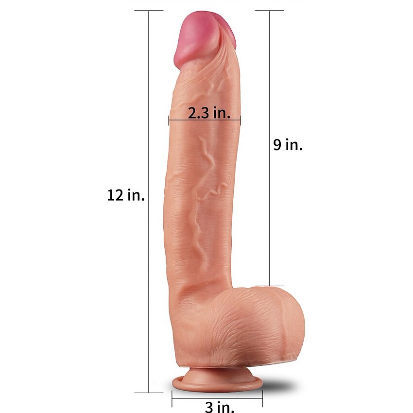 Dildoul realistic 12 Dual Layered Platinum este fabricat din silicon jelly și plăcut la contact și are 30.5 cm lungime și 5.8 cm în diametru.