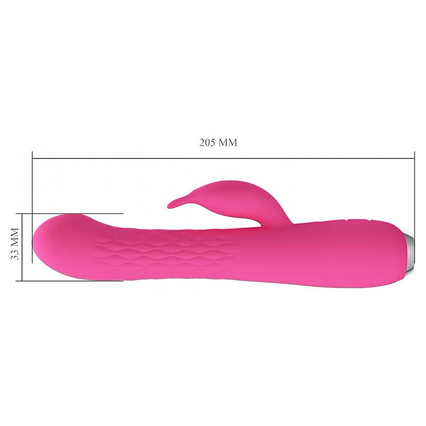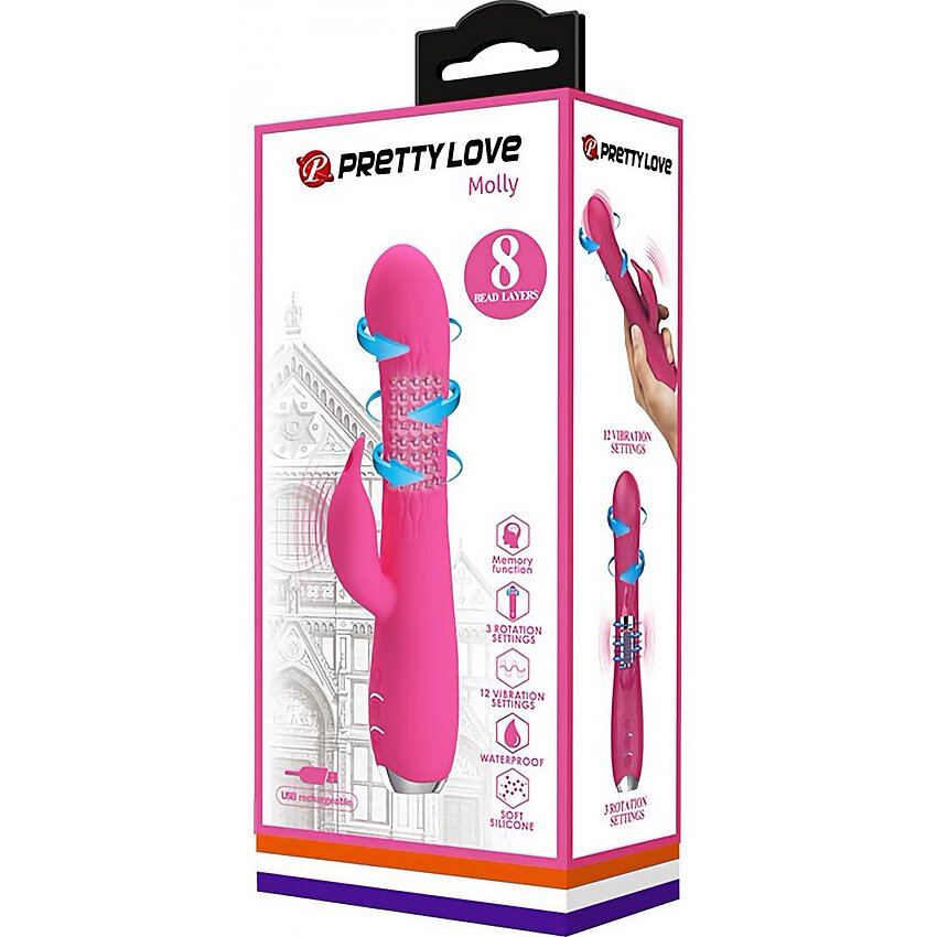 Vibratorul Pretty Love Molly este făcut din silicon moale și simpatic la mângâiere și are o extindere de 20.5 cm iar diametrul de 3.3 cm. Are o colorit roz, foarte plăcută și se încarcă prin USB, astfel că nu trebuie să ai preocupare bateriilor.