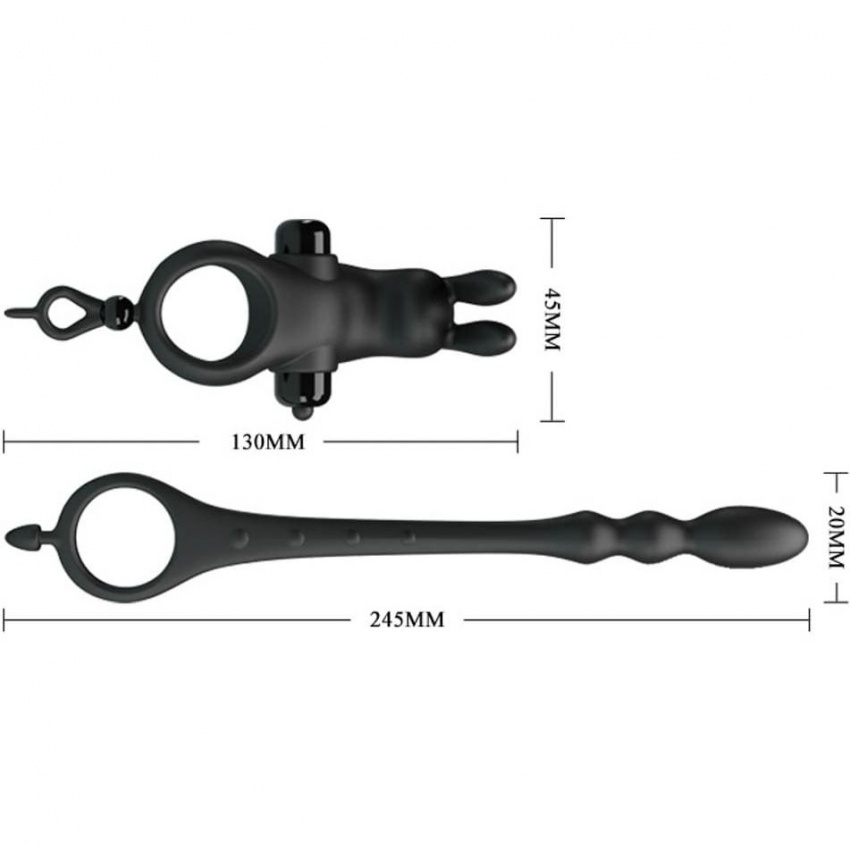 După ce pui inelul pe penis, poți folosi plug-ul anal pentru a obține un plus de plăcere. Deasupra inelului, este însușit cu un stimulator pentru clitoris, în siluetă de urechiușe de iepure, pentru a oferi un plus de plăcere partenerei. Are de întocmai vibrații puternice ce te ajută să transformi membrul într-un adevărat vibrator. Inel Mădular Pretty Love Vibration Negru utilizeaza 1 baterie in format AA care poate fi comandata impreuna cu acest produs.