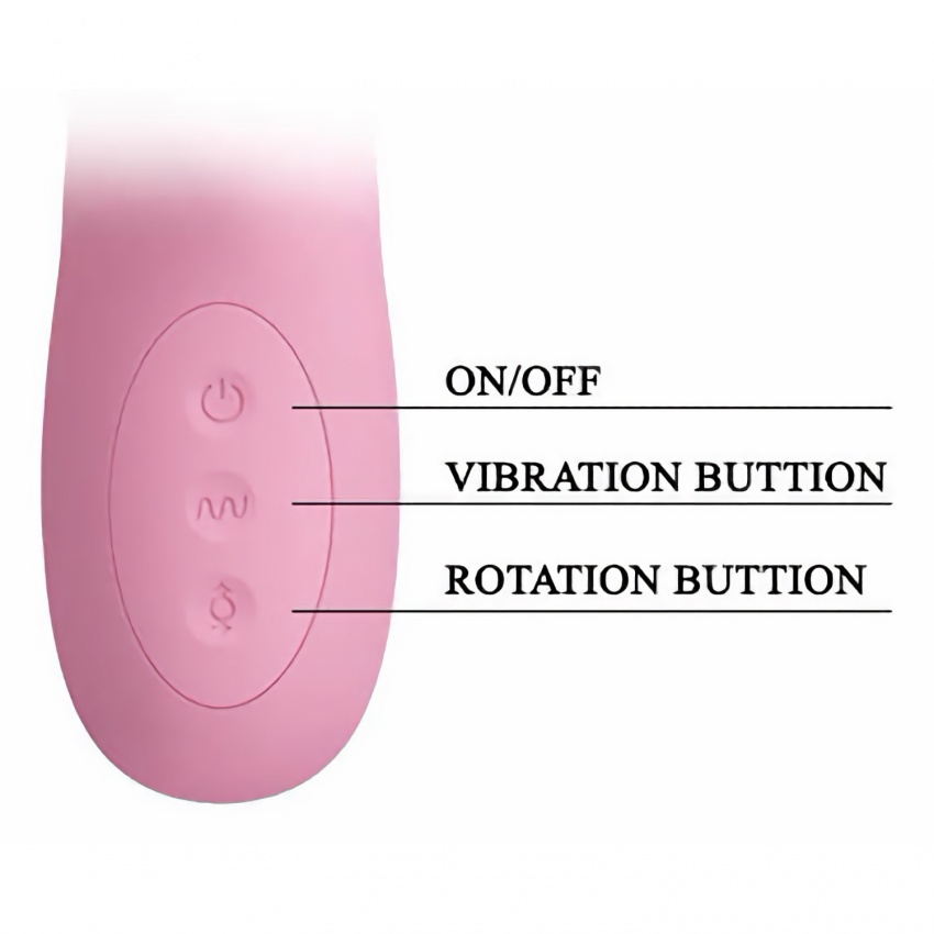 Vibrator Bunny Pretty Love Truman Pink este un vibrator rabbit reîncărcabil, din silicon, cu 4 funcții de valuri de rotație și 12 aplicații de vibrație.
