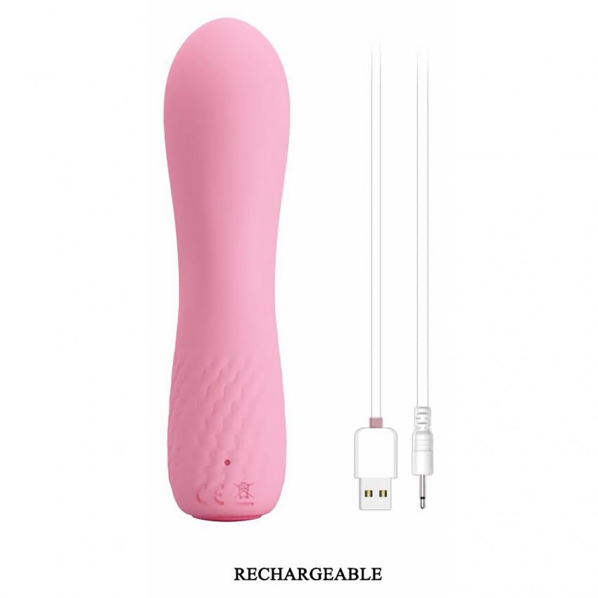 Lungime Totală: 11.9 cm Diametru: 3.1 cm Culoare: Roz Material: Silicon Livrare: Confidențială Rezistent La Apă Reîncărcabil Încărcare Prin USB Brand: Pretty Love