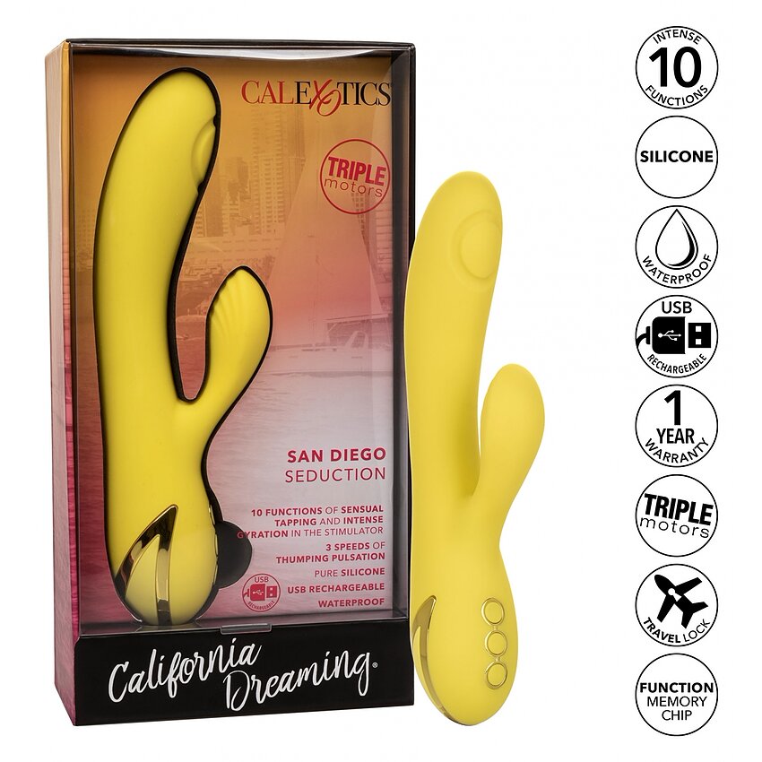 Umflat și având trei viteze de întoarcere puternică în arborele său galben, San Diego Seduction va face nișcai valuri serioase când vine vorba de stârnirea punctului G (sau a prostatei) și a zonei sensibile interioare.