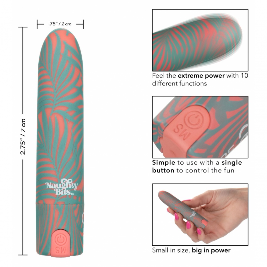 Conic la vârf, Mini poate viza rapid și precis clitorisul, sfârcurile, penisurile, fundul (doar afară, vă rog!) și mai departe, cu forma sa limpede și robustă. Se află zece feluri posibile de vibrații profunde și palpitante din care să alegeți, toate activate și variate prin atingerea unui singur buton de pornire/funcție.