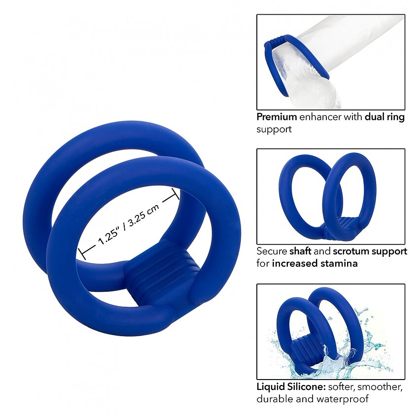 Inelul pentru penis dublu se menține bine și stabil în timpul sexului - ambele inele pot fi purtate peste penis, sau unul poate fi pus peste scrotul.