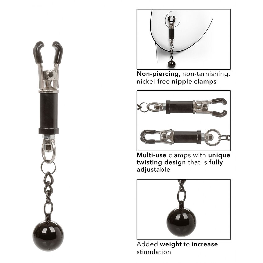 Estompați granițele dintre plăcere și durere și mai mult cu susținerea clemelor pentru mamelon ponderate cu cleme de răsucire.