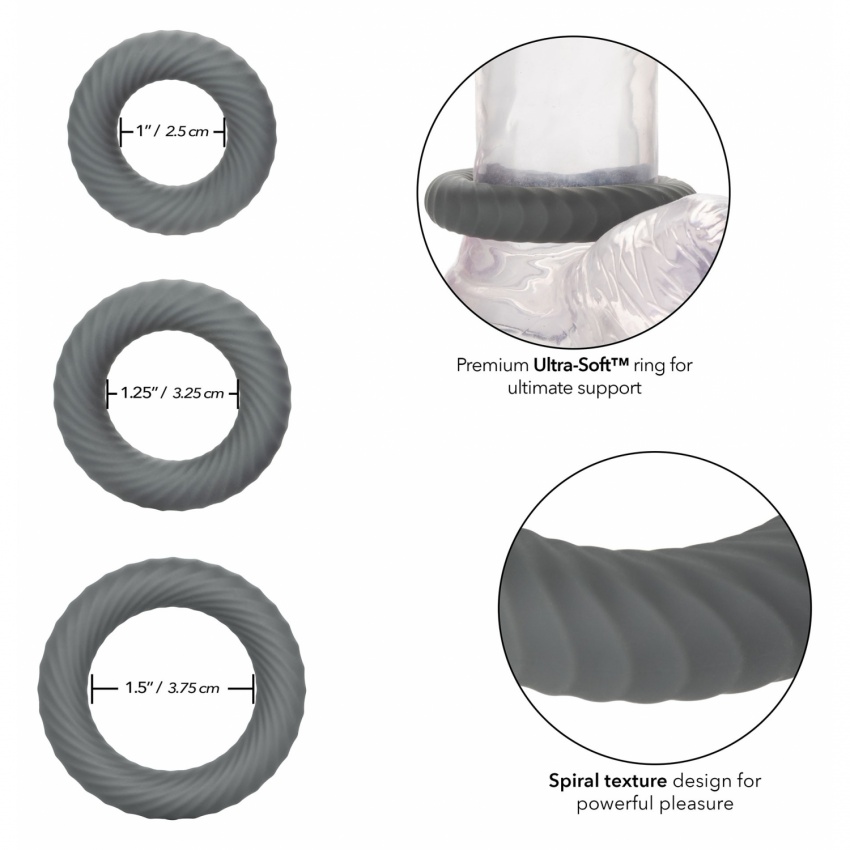 Fiecare inel din asta a crescut treptat în dimensiune cu un model de textură în spirală pentru o practică senzațională la fiecare purtare. Aceste inele pentru penis cu textură unică sunt făcute pentru a amplifică rezistența, pentru a îmbunătăți receptivitatea și pentru a oferi un sprijin emoționant pentru erecție.