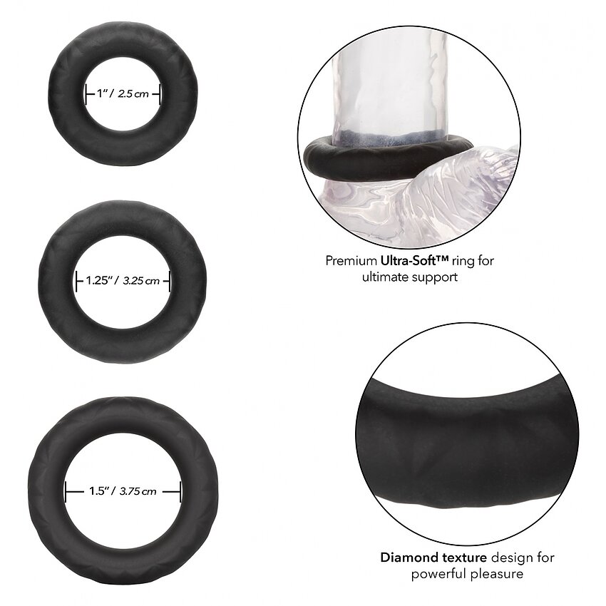Joacă-te folosind mai multe inele împreună sau un inel pentru a guverna în dormitor. Siliconul ultra-moale de lux este sigur pentru corp, minus parfum și excluzând chimicale periculoase pentru a vă menține cele mai receptive zone, fericiți și sănătoși.