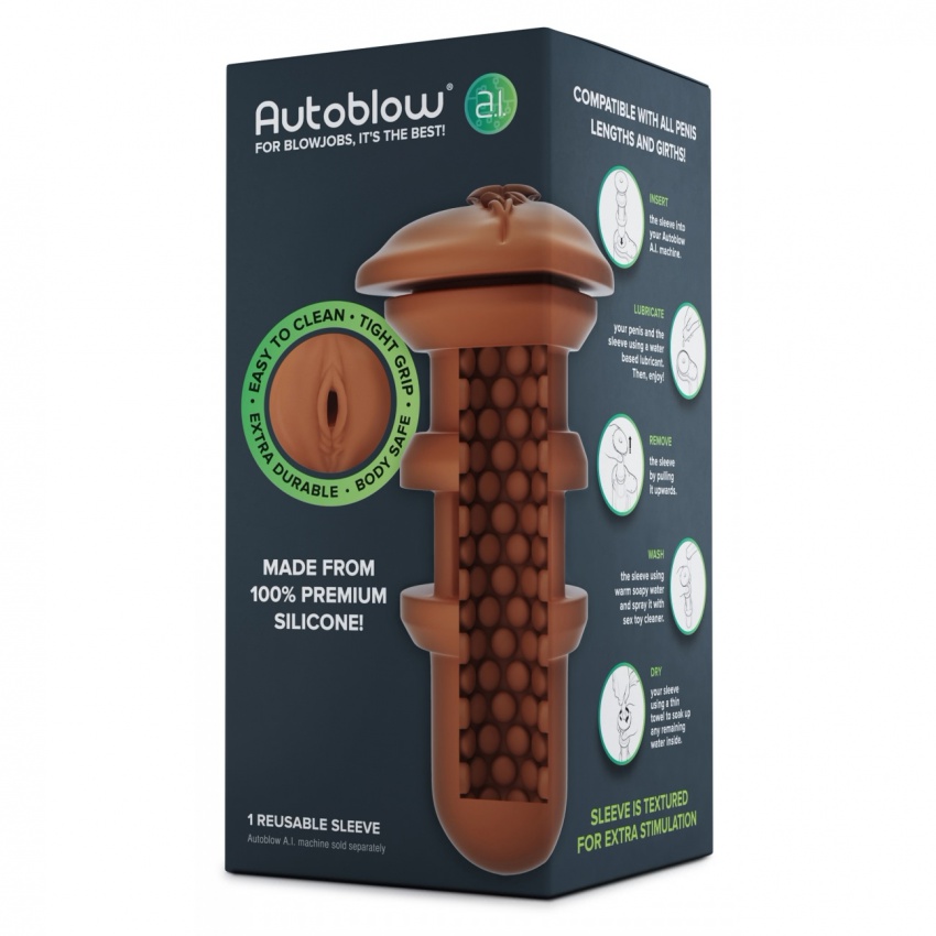 Autoblow AI este un cilindru din silicon de tentă maro potrivit pentru a fi întrebuințat la masturbatorul Autoblow. Este ușor de folosit, tot ce trebuie să faci este să îl introduci în masturbator pentru a avea parte de orgasme extreme.