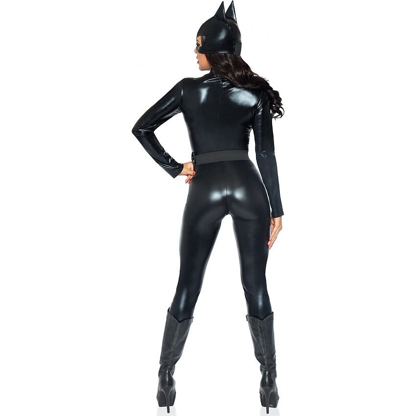 Captivating Crime Fighter din 3 piese, include costum matlasat cu fermoar în față, portjartier de utilitate și mască cu urechi de liliac.