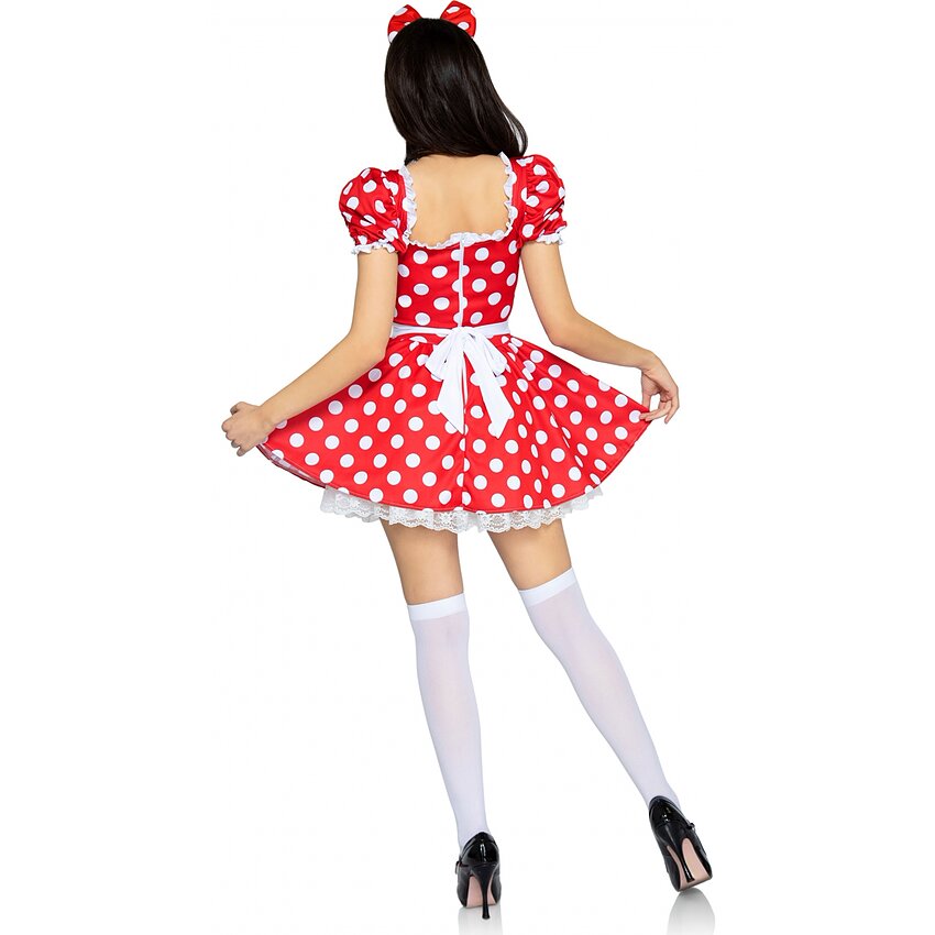 Rochie cu buline din 2 piese, cu corset tip inimă cu volane și bentiță cu fundă asortată. Ciorapii din imagini pot fi comandate separat.