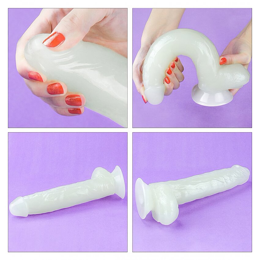 Dildoul fosforescent Lumino Play Lovetoy este confecționat din TPE, are 26 cm extindere iar în diametru 5 cm. E prevăzut cu vene proeminente pe exterior ce stârnește intens pereții genitali în momentul folosirii.