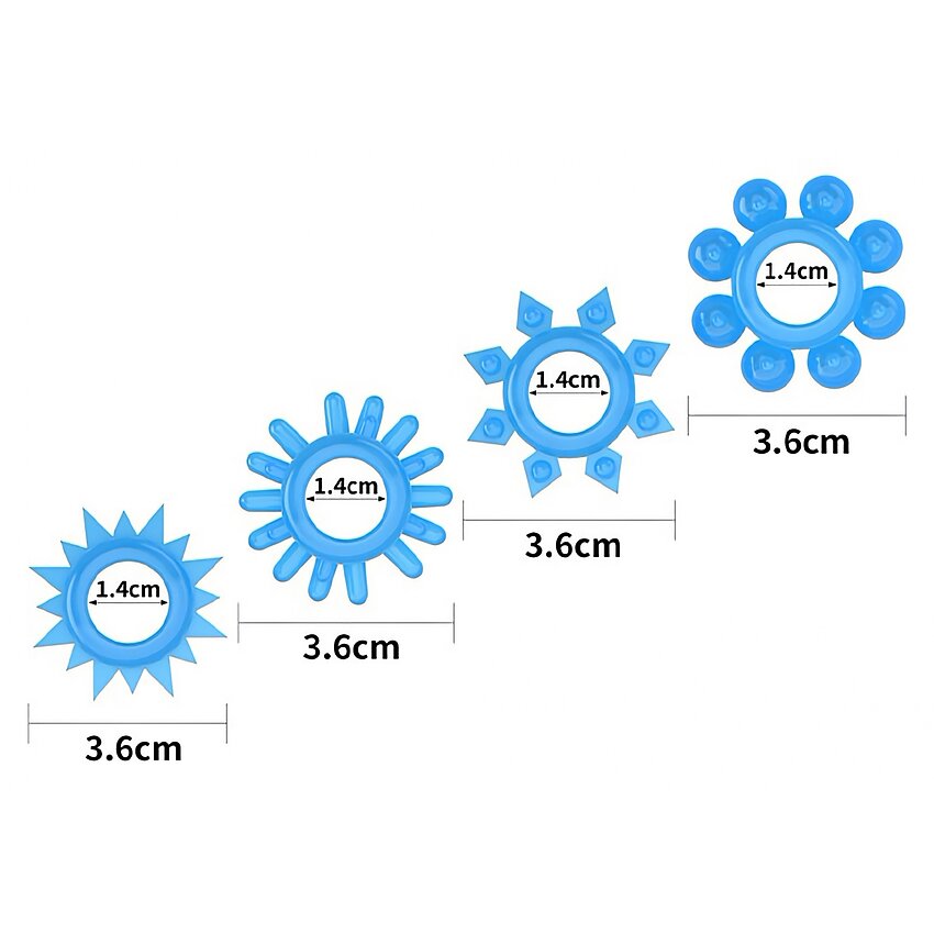 Kitul de inele Lumino Play de la Lovetoy este conceput din 4 inele cu înfățișări diferite. Acestea au un diametru de 1.4 cm, însă sunt destul de flexibile, potrivindu-se aproximativ pe orice penis.