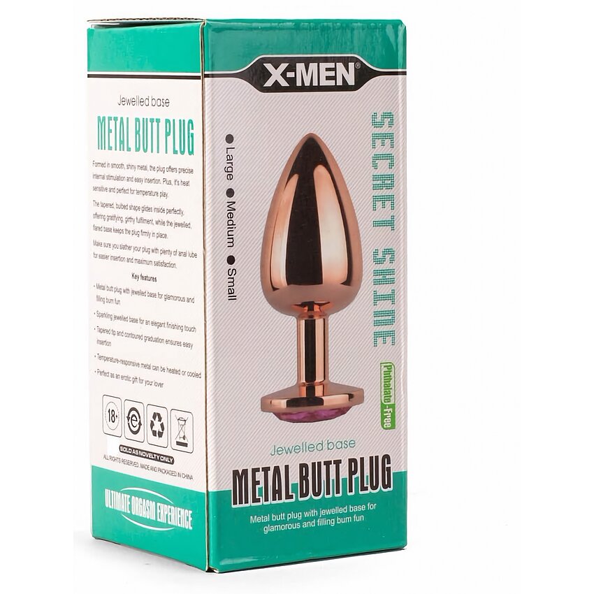 Lungime Totală: 9.5 cm Lungime Inserabilă: 8.4 cm Diametru: 4.1 cm Culoare: Roz Material: Metal Livrare: Confidențială Brand: X-Men