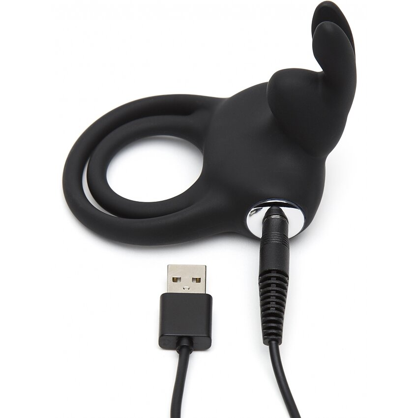 Happy Rabbit - Stimulating USB Rechargeable Rabbit Love Ring Negru