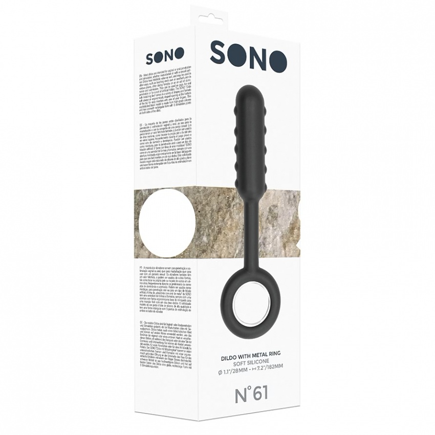Dildo-ul SONO cu inel metalic vine într-o varietate de înfățișări și formate, având întotdeauna o deschidere ergonomică în componentă de jos a jucăriei pentru o introducere ușoară cu unul dintre degete.