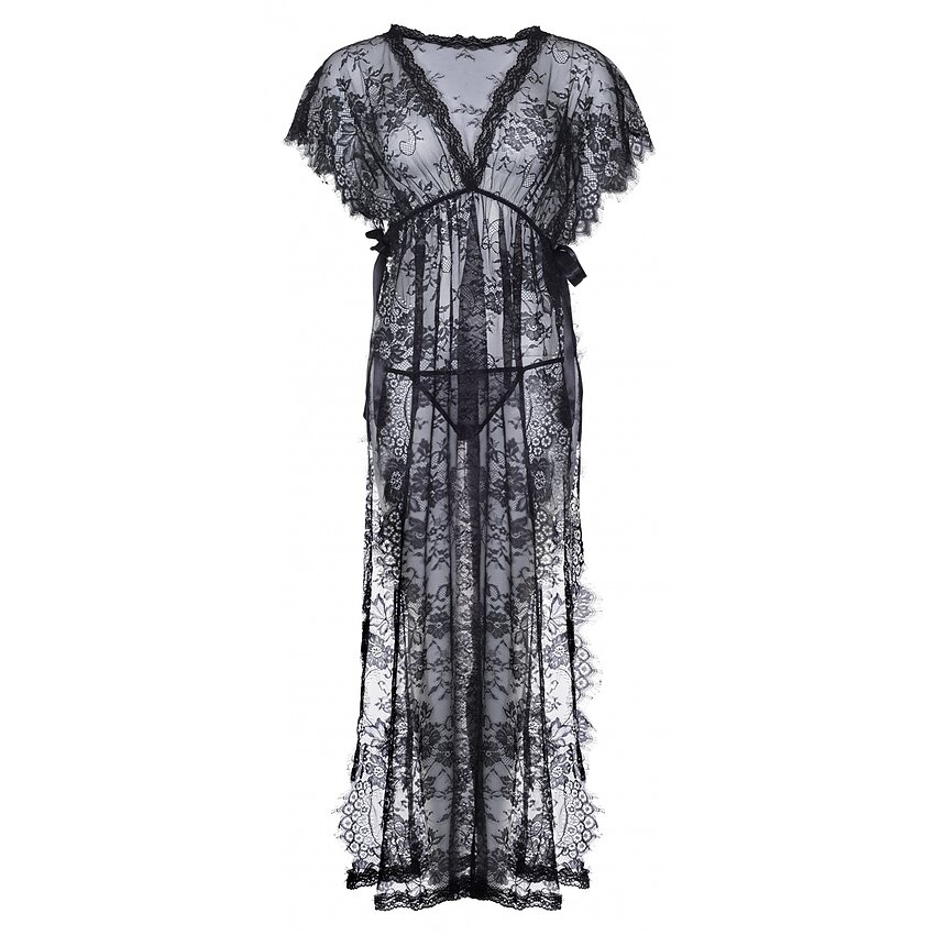 Chemise Leg Avenue Lace Kaften Robe închis la culoare este un obiect de lenjerie admirabilă și inimaginabil de captivantă, creată și realizată de excepționalul brand de lenjerie Leg Avenue.