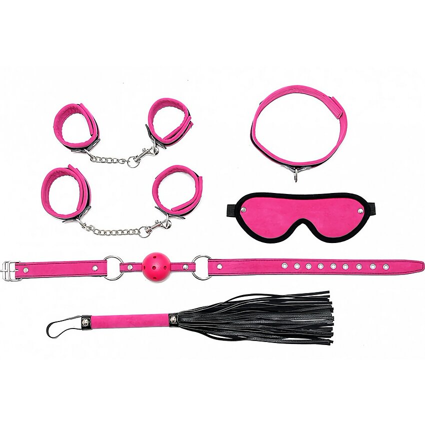 Cu acest kit complet vei avea totul. Are niște cătușe și un guler pentru o supunere extremă. Pentru a ascuți simțurile un căluș și o mască. Iar pentru un strop de tensiune un flogger bun.