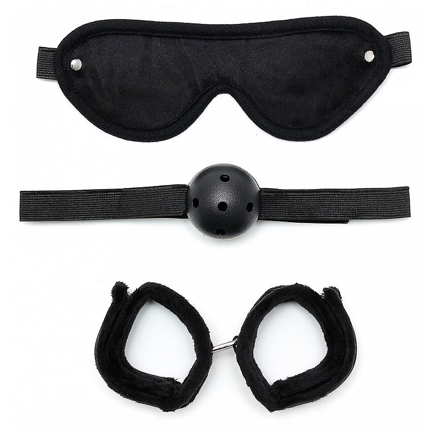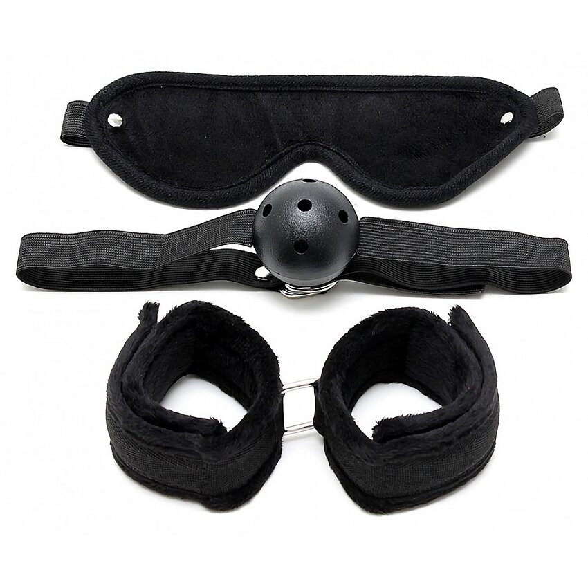 Set Bondage Soft care conține: Mască + Mouthgag + Manșete cu închidere velcro.