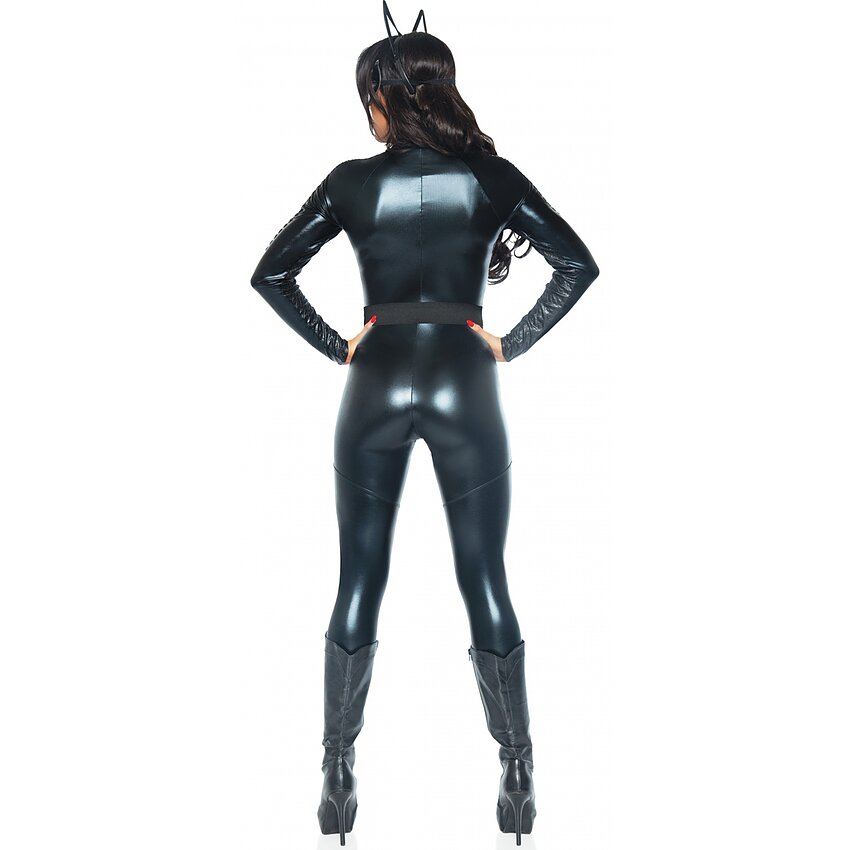Acum este totul despre tine, societatea este a ta. Acest set de costum-pisică din 4 piese include un costum matlasat cu fermoar, cu mâneci de plasă, curea utilitară, mască pentru ochi și bentiță de sârmă pentru urechi. Mănușile și biciul nu sunt incluse.