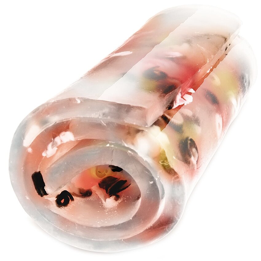 SĂPUN RULOU DECORATIV PICIORUȘE DE CRAB CU GLICERINĂ prelucrat manual. Un săpun cu extracte din fructe, parfumat, revigorant, energizant, ce conferă dermei catifelare și hidratare.