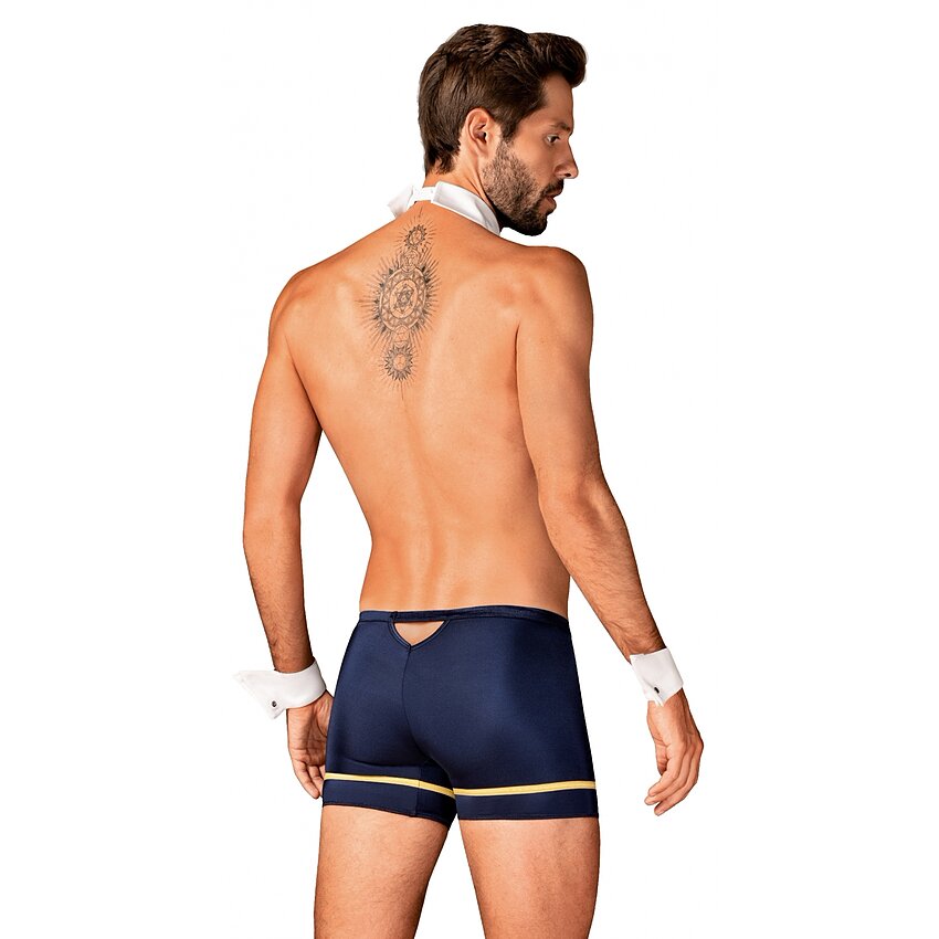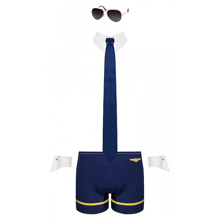 Surprinde-ți partenera într-un mod inedit purtând acest set în care tu însuți vei fi cel care va pilota întreaga aventură! Noi ți-am pregătit deja costumul ce include boxeri, manșete, guler reglabil de care se atașează cravata și nelipsiți ochelari de pilot, toate confecționate din cel mai bun material. Ai curaj și îndrăznește să zbori spre plăcere! Produsul este făcut dintr-un material elastic si se potriveste marimilor S si M.