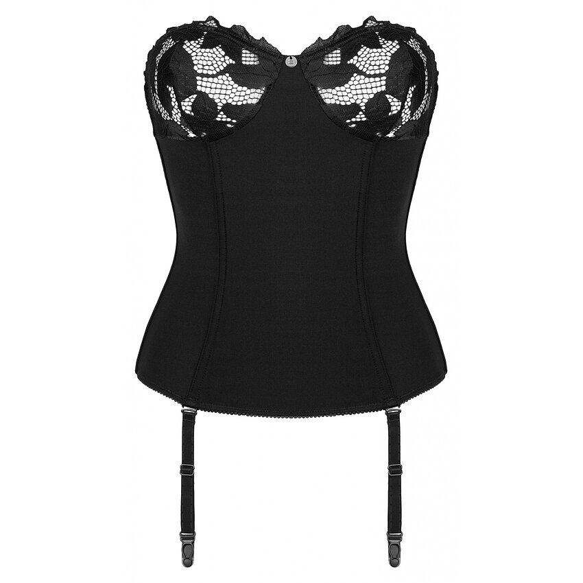 Un corset nice și incitant de tentă neagră, cu inserții de broderie cu elemente florale. Materialul este fin la atingere iar volănaș dezvăluie toate atuurile de care dispui. Cupele fabricate din dantelă vor atrage privirea spre acea zonă. Bretelele portjartierului sunt detașabile și reglabile pentru o potrivire perfectă.