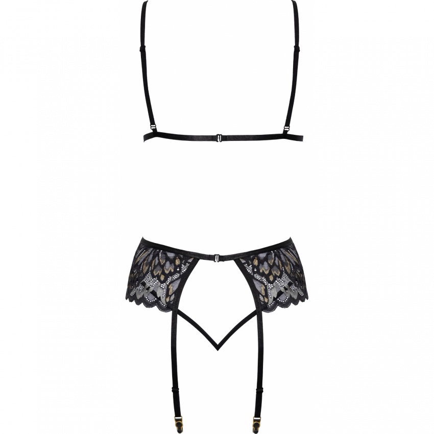Toate piesele sunt moi și elastice pentru o potrivire destul de confortabilă. Sutienul are bretele ajustabile și o prindere cu cârlig la spate. Portjartierul are, de asemenea, o prindere cu cârlig la spate și bretele reglabile. Panty-ul mic, fantezist, este foarte seducător pentru că are două bretele înguste, elastice, care se îmbină în zona picioarelor. Stockings nu sunt incluse.