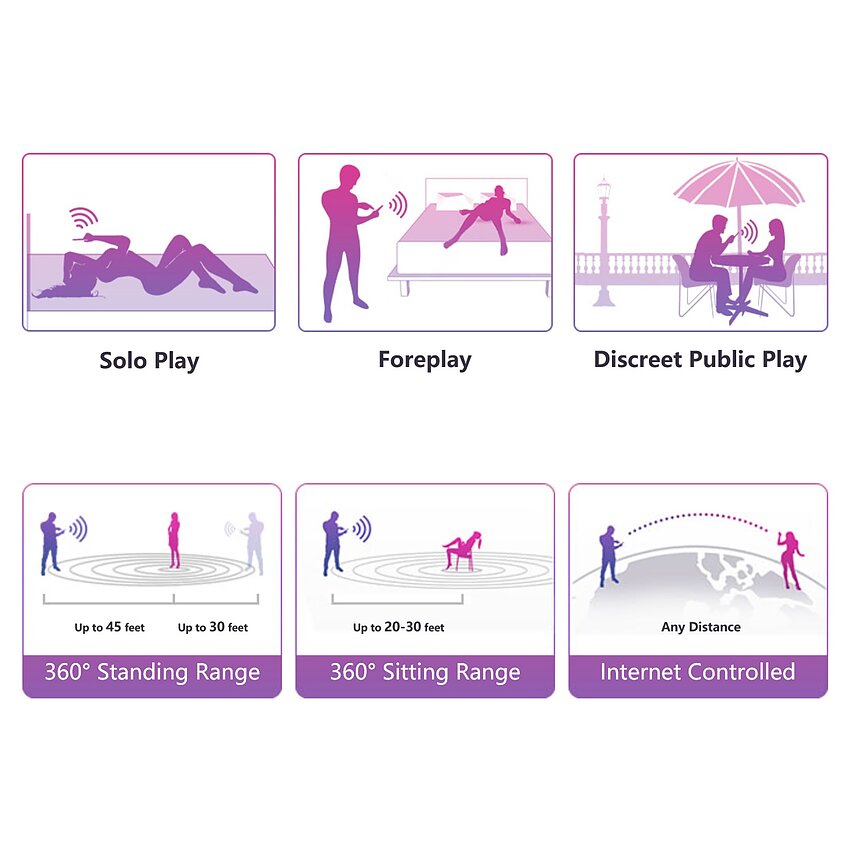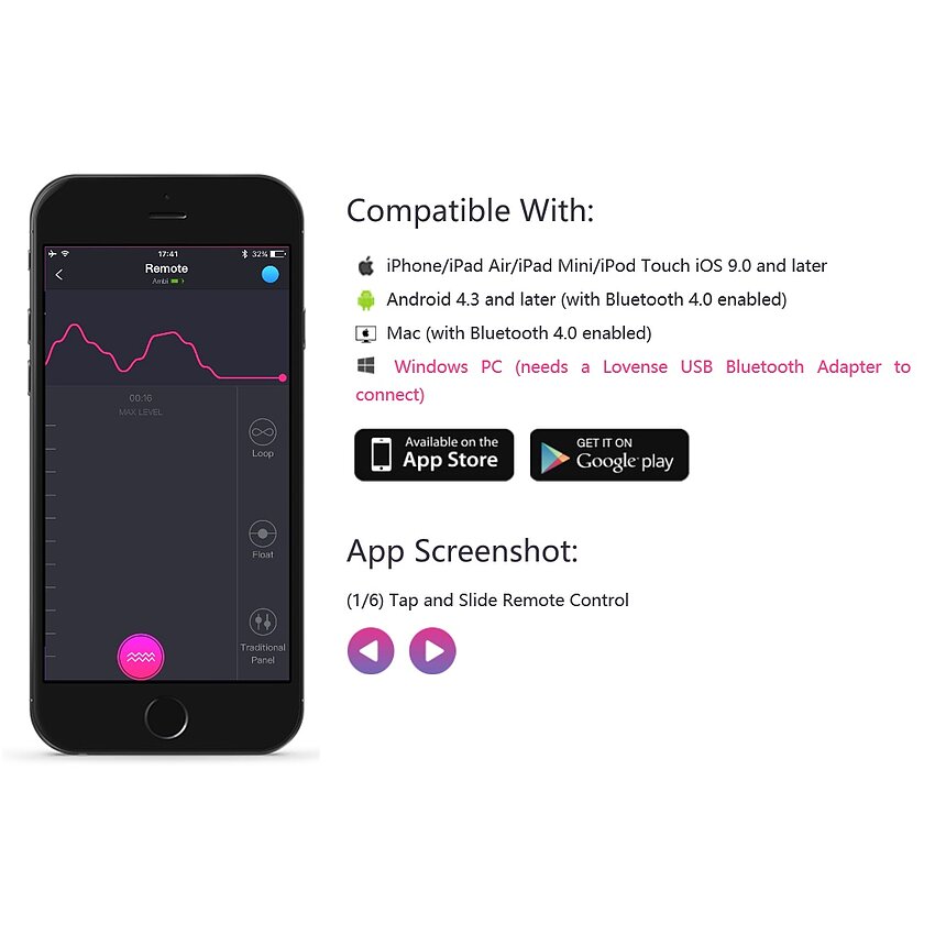 - Cel mai dominant vibrator de control la distanță prin Bluetooth disponibil! - Tehnologia Bluetooth de ultima generație acordă cea mai lungă rază de control dintre toate vibratoarele portabile. - Raza de control în picioare: până la 30-45 de metri și în șezând: până la 20-30 de metri. - Vibratorul este insonor atunci când este inserat, posedând un grad maxim de zgomot de doar 45,5 dB. - Este cu 4x mai zdravăn decât majoritatea ouălor de iubire și a altor vibratoare portabile. - Se poate utiliza discret, fără a te îngrijora că alții ar putea auzi vibrațiile. - Aplicația permite controlul vibratorului din orice colț al lumii prin internet.
