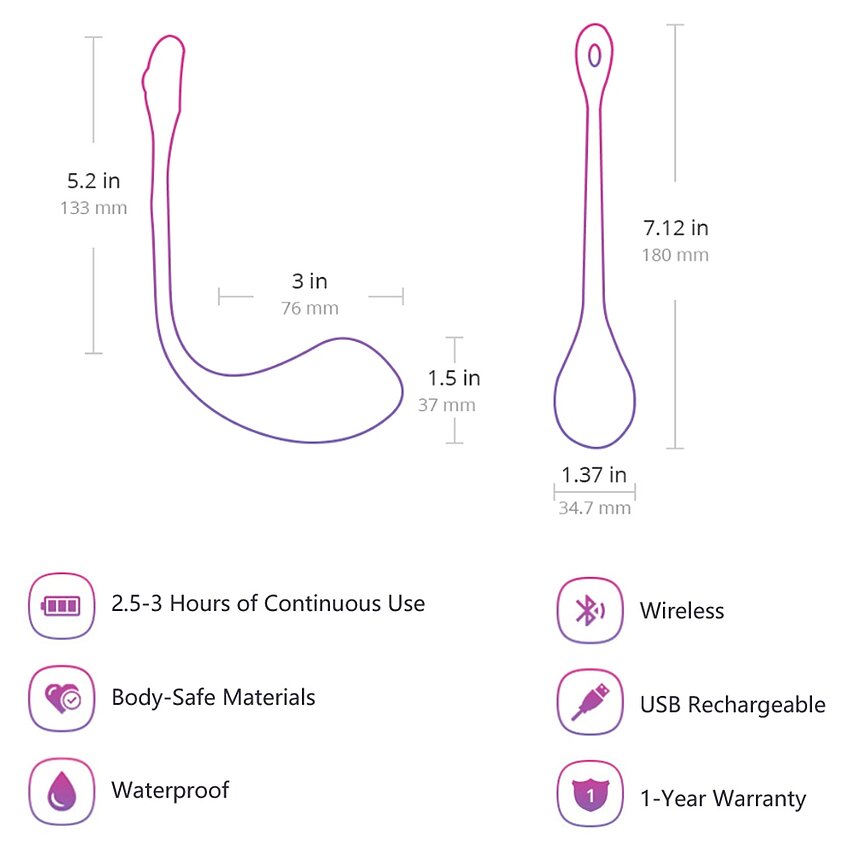 - Tehnologia sa revoluționară și vibrațiile tari garantează o experiență intensă, indiferent unde vă aflați unul față de celălalt. - Poate fi purtat discret sub lenjerie, fiind 100% impermeabil și controlabil cu o aplicație pentru smartphone din orice colț al lumii. - Controlul poate fi creat pe distanțe lungi prin internet, punând la dispoziție astfel un control discret și public de oriunde din lume. - Aplicația permite vibrarea în funcție de sunete externe, activând vibrațiile în funcție de zgomotele din jurul tău. - Motorul este extraordinar de viguros și silențios, conținând un indice de zgomot sub 45,5 dB. - Vibratorul are o perioadă de utilizare continuă de până la 2,5-3 ore cu o singură încărcare. - Conferă suport pentru mai numeroase platforme, inclusiv iPhone/iPad și Android. - Butonul de pornire este localizat la capătul cozii, permițându-i utilizarea confortabilă chiar și atunci când este purtat. - Vibratorul Lush 2 oferă vibrații profunde pentru surescitarea punctului G, comandate prin aplicație. - Designul curbat al vibratorului permite o stabilire sigură în interiorul vaginului și este flexibil pentru a se adapta perfect atunci când este purtat și utilizatorul se mișcă. - Este fabricat din silicon catifelat pentru o inserție ușoară și confort maxim.