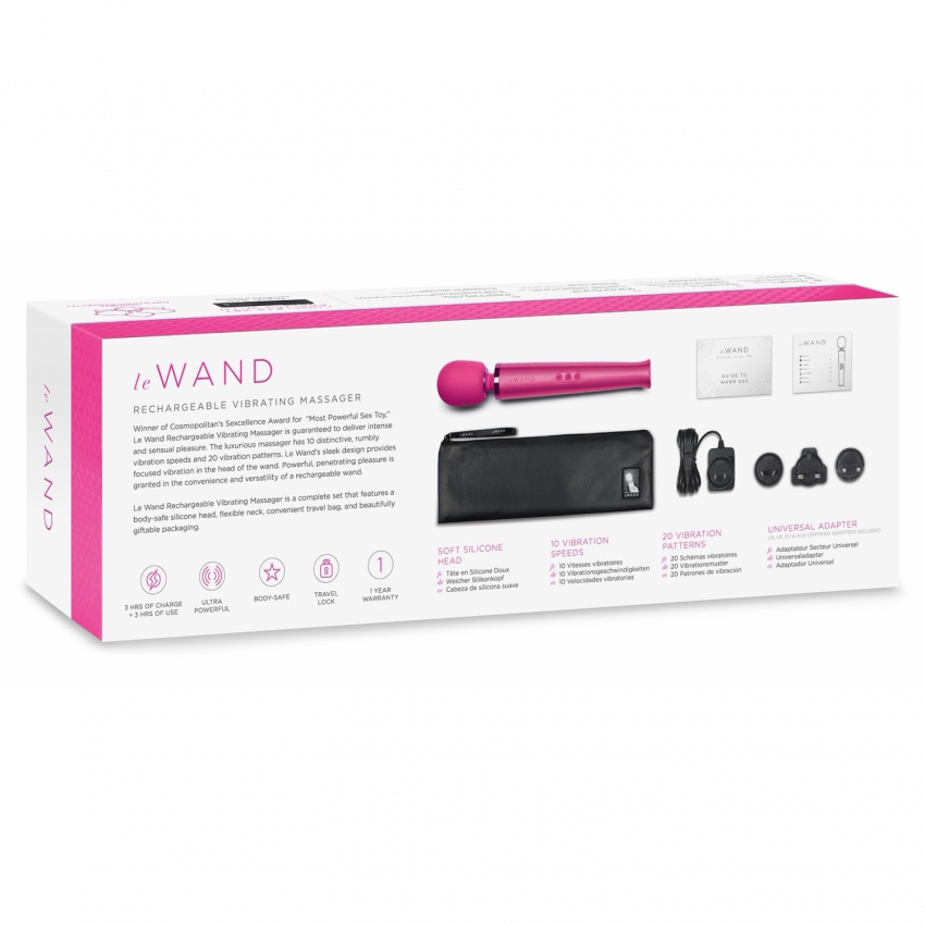 Dispozitivul de frecție reîncărcabil Le Wand oferă o plăcere intensă și senzuală. Această wand de lux are 10 viteze distincte, vibrante și 20 de vibrații. Designul elegant oferă o vibrație concentrată în capul wandului. Este rezistent la apă (poate fi luată în duș și baie). Îl poți folosi pentru a vă stimula clitorisul sau la fel de bine, pentru a masa orice zonă a corpului, cum ar fi spatele, gâtul.