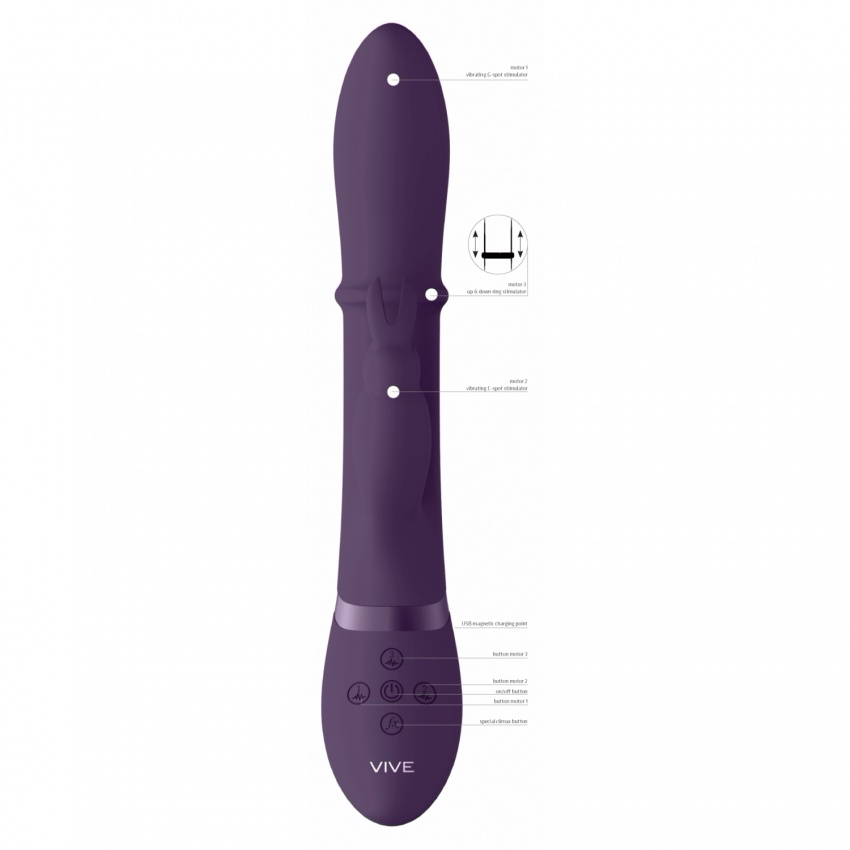 Brandul High Class Vive înseamnă stimularea supremă prin inovare continuă! Acest vibrator rabbit de top are o caracteristică unică care vă va face degetele de la picioare să se îndoaie de extaz! Are un inel de stârnire integrat în tijă netedă, de excepție medicală, din silicon, care se mișcă în sus și în jos pentru un frecție intern ca nimeni altul.