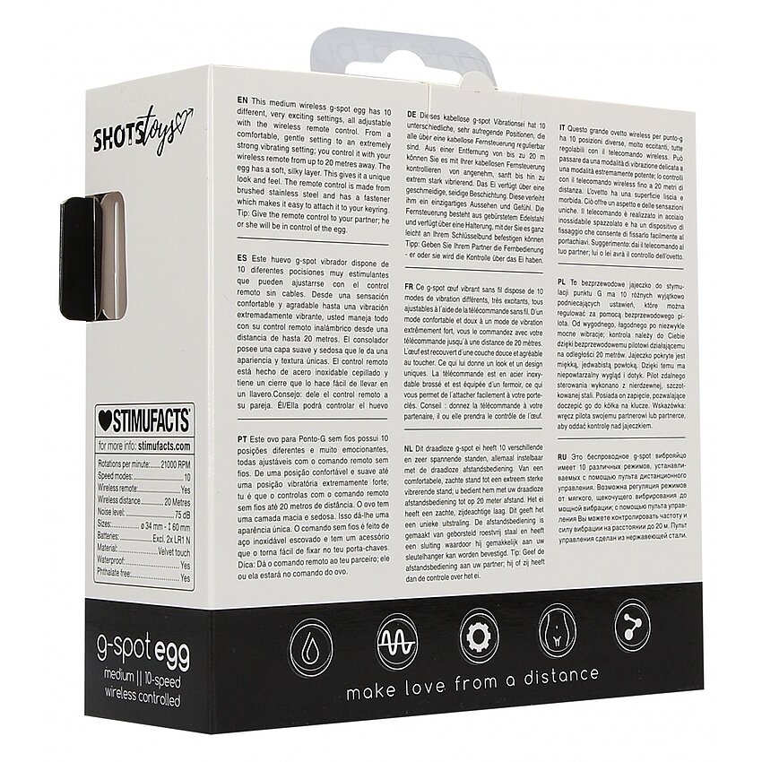 De la o poziție confortabilă, blândă la o poziție vibrantă extrem de puternică; îl controlezi cu telecomandă wireless de la până la 20 de metri distanță. Oul are un înveliș neted și mătăsos, iar acest lucru îi conferă un aspect și o senzație unică.