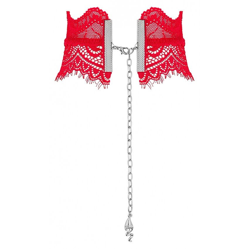 Chokerul Bergamore într-o nuanță vie de roșu ar putea înlocui cu ușurință cele mai scumpe bijuterii. Pentru a adăuga o senzație sofisticată, există un pandantiv decorativ în față și o închidere cu lanț metalic reglabil cu un decor strălucitor la spate. Colorație sa tare și șablonul elegant îți vor condimenta seara, mai ales când o combini cu un set îndrăzneț din aceeași colecție. Cu excepția cazului în care intenționați să porți doar un choker. Ce opțiune ați alege?