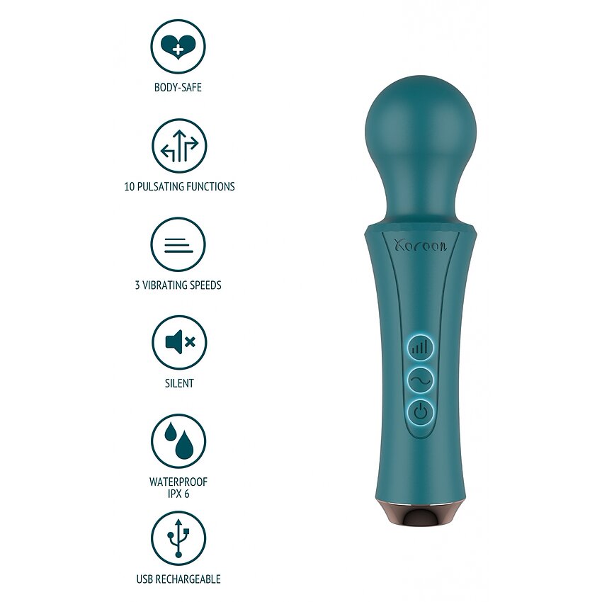 Întâlnește-ți noul cel mai bun prieten: Personal Wand Verde de la XOCOON. Acest wand cu acumulator are o vibrație puternică, profundă și cutremurătoare, dar cu aproximativ nicio vibrație în mâner pentru confort maxim. Alege între 3 viteze diferite și 10 tipuri de vibrații și bucură-te de un masaj excelent peste tot corpul tău.