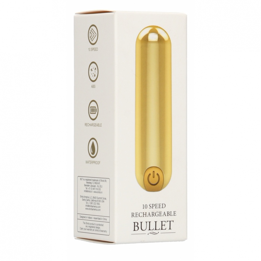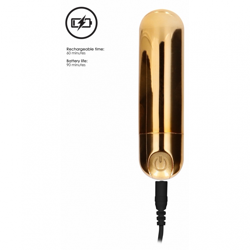 Lungime Totală: 7.7 cm Diametru: 2 cm Culoare: Auriu Material: ABS Livrare: Confidențială Rezistent La Apă Reîncărcabil Încărcare Prin USB Brand: Shots
