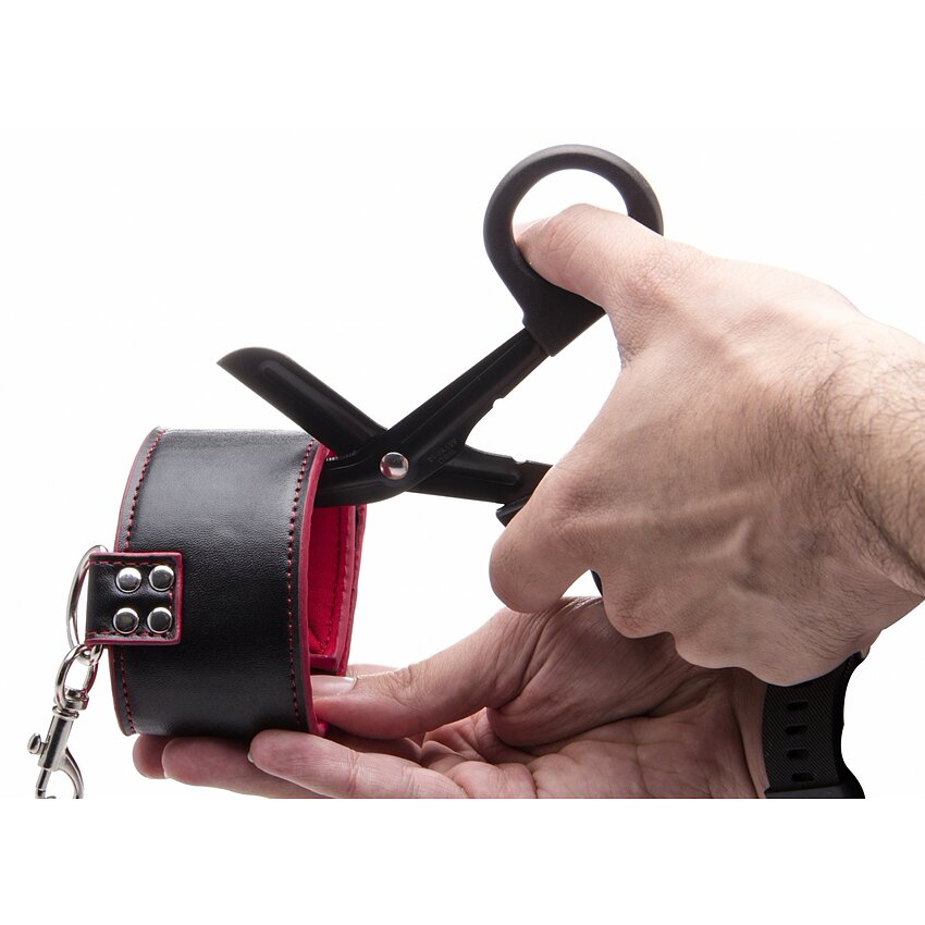 Acesta foarfecă de siguranță pentru Bondage are o mărime de 17.78 cm, este realizate din oțel inoxidabil și ABS și are un vârf de protecție contondent care îngăduie utilizatorilor să taie frânghii, folii de polietilenă, bandă adezivă, legături cu fermoar care sunt lângă piele, minus a răni. Aceasta va tăia chiar și prin majoritatea sistemelor de reținere din tegument în caz de urgență.