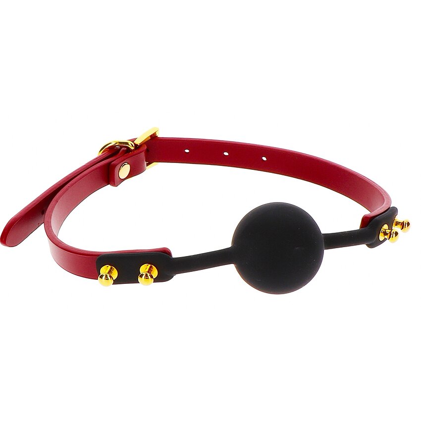 Călușul perfect reglabil este produs din piele ecologică de înaltă excepție cu podoabe metalice aurii. Bila din silicon pur este 100% sigură pentru corp, cu un diametru de 4.1 cm.