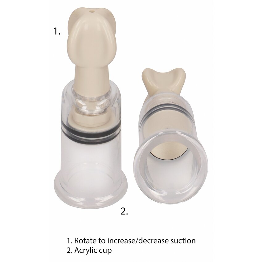 Simțiți stimularea ventuzei cu aceste cupe pentru mamelon. Aceste ventuze pot fi aplicate și răsucite cu ușurință pentru a augmentează temporar dimensiunea mameloanelor.