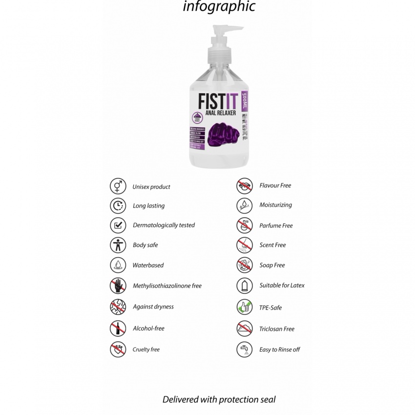 Fist It Professional este un agent de ungere pe bază de apă. Potrivit pentru utilizare cu prezervative din latex. Verificat dermatologic, lipsit de grăsimi, incolor, inodor și minus gust.