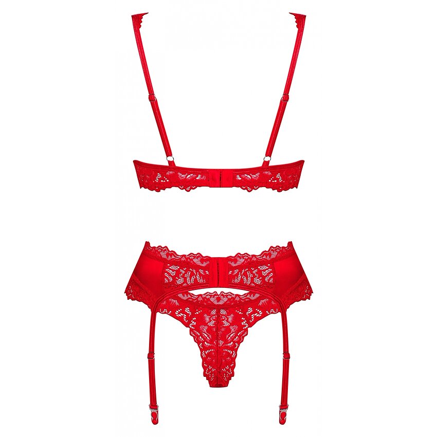 Set Obsessive Amor Cherris 3 Componente Roșu este o piesă de lenjerie extraordinară și extraordinar de ademenitoare, inventată și confecționată de însemnatul brand de lenjerie Obsessive din Polonia.