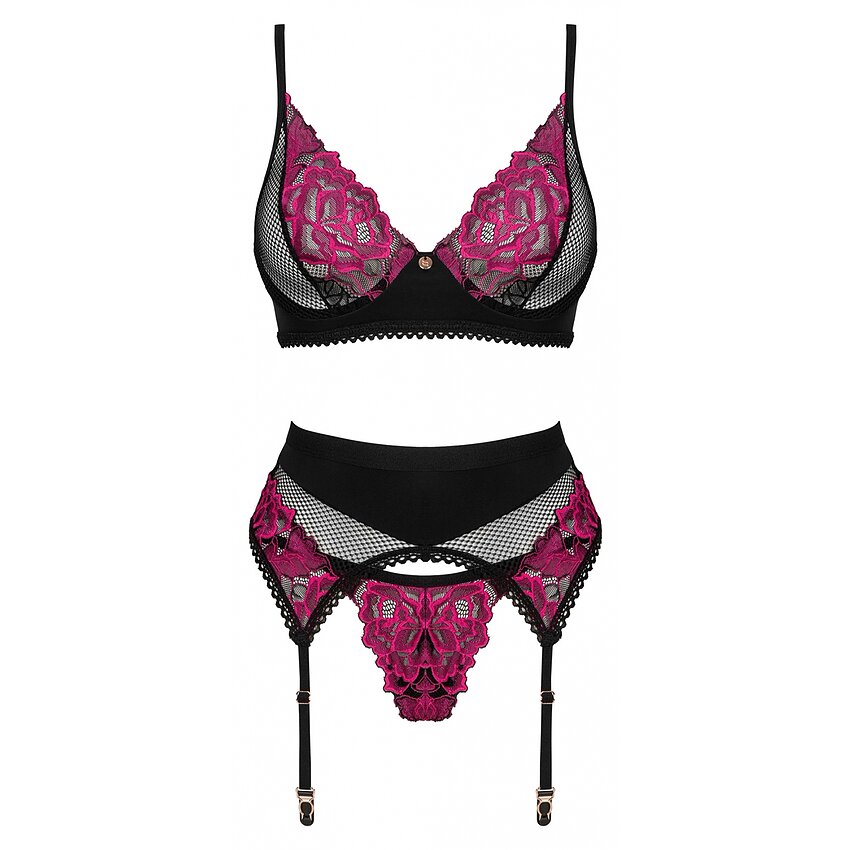 Set Obsessive Rosenty 3 Componente Roz este o piesă de lenjerie surprinzătoare și extraordinar de ademenitoare, desenată și realizată de excepționalul brand de lenjerie Obsessive din Polonia.