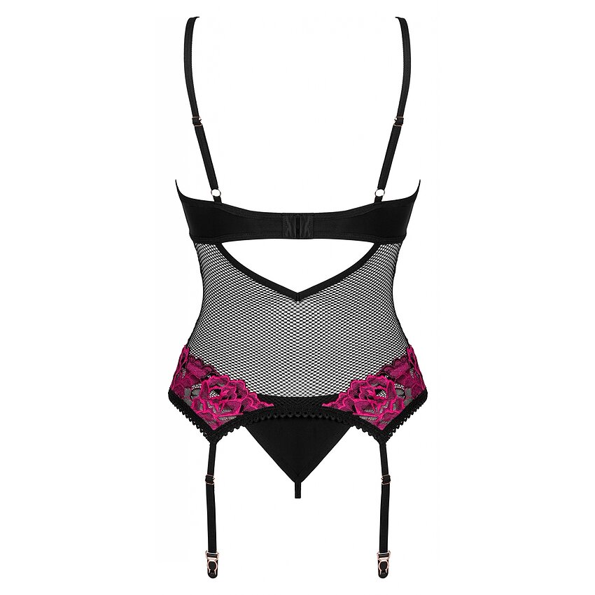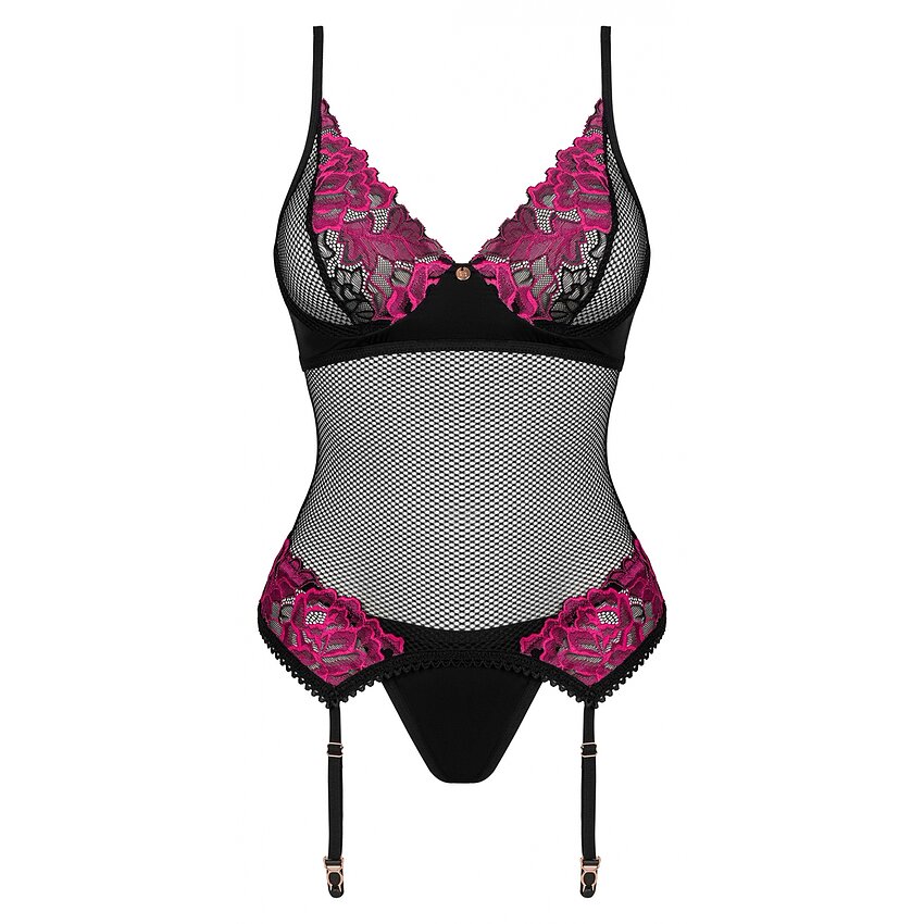 Corset Obsessive Rosenty Roz este un articol de lenjerie tulburătoare și neînchipuit de fermecătoare, imprimată și fabricată de ilustrul brand de lenjerie Obsessive din Polonia.