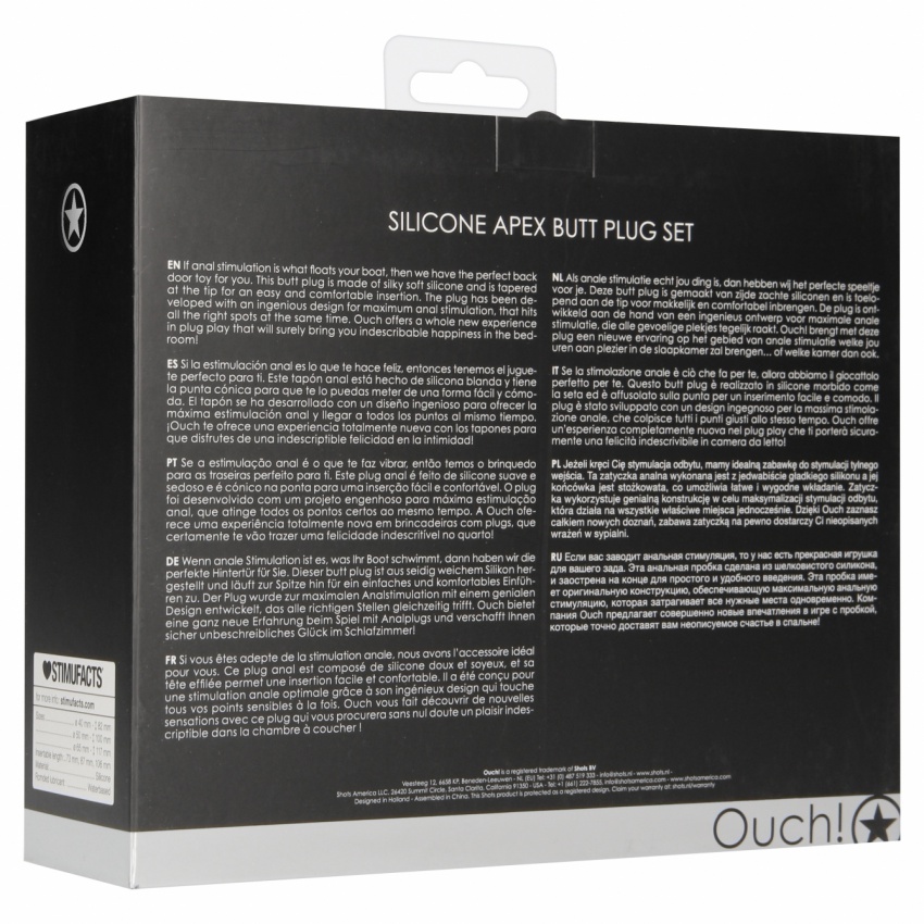 Dacă stimularea anală este ceea ce vă încântă, atunci avem jucăria impecabilă pentru dvs. Acest set de 3 dopuri anal este confecționat din silicon moale și catifelat și este conic la vârf pentru o inserare ușoară și confortabilă.