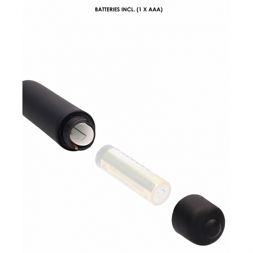 Este nevoie de o baterie AAA (inclusă). Concepută din silicon super-neted de calitate medicală, lipsit de ftalați, jucăria are o extindere totală de 45 cm, o mărime inserabilă de 35 cm și un calibru de 0.5 cm.
