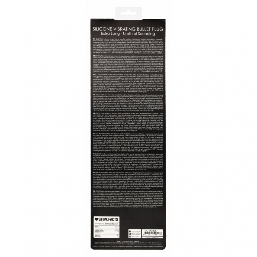 Ouch are o varietate de sonde uretrale pentru începători, cum ar fi și pentru utilizatorii avansați! Acest tip vibrant SUPER-LONG este foarte flexibil, iar vârful rotunjit îngăduie o introducere ușoară. Sonda are un singur mod de vibrație care ajunge la 12.000 rpm, dar este ultra silențioasă la mai puțin de 50 dB.