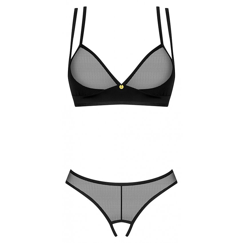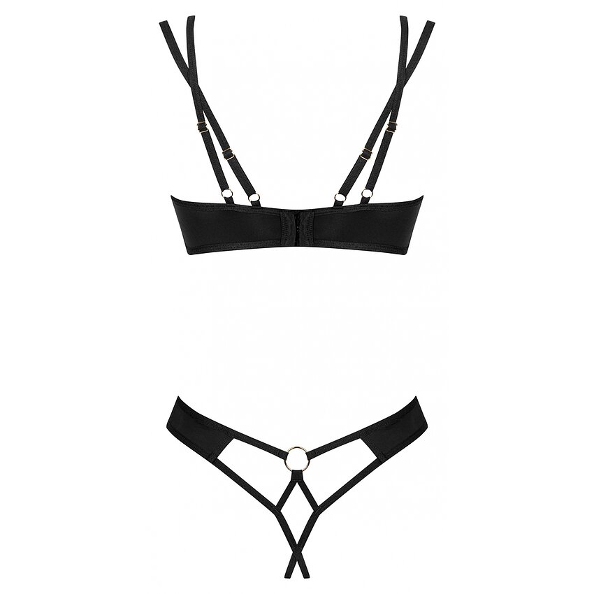 Set Obsessive Nesari Tăiat 2 Componente Negru este o piesă de lenjerie surprinzătoare și extrem fermecătoare, imprimată și fabricată de însemnatul brand de lenjerie Obsessive din Polonia.