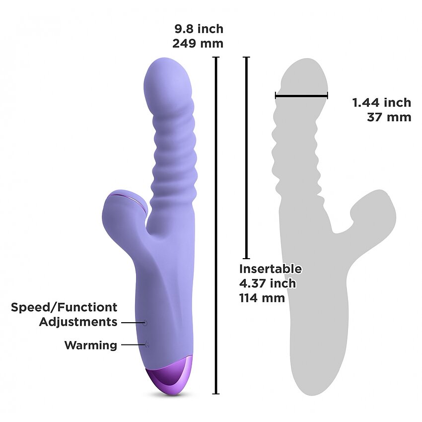 Nova de Luxe Bunny dispune de un ax de împingere pentru o stimulare profundă și tare și un stimulator pulsatoriu al clitorisului care acordă percuții zgomotoase.
